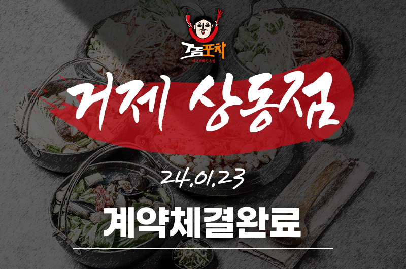 거제 상동점 계약체결완료계약체결일 : 2024.01.23매장(예정)주소 . . .